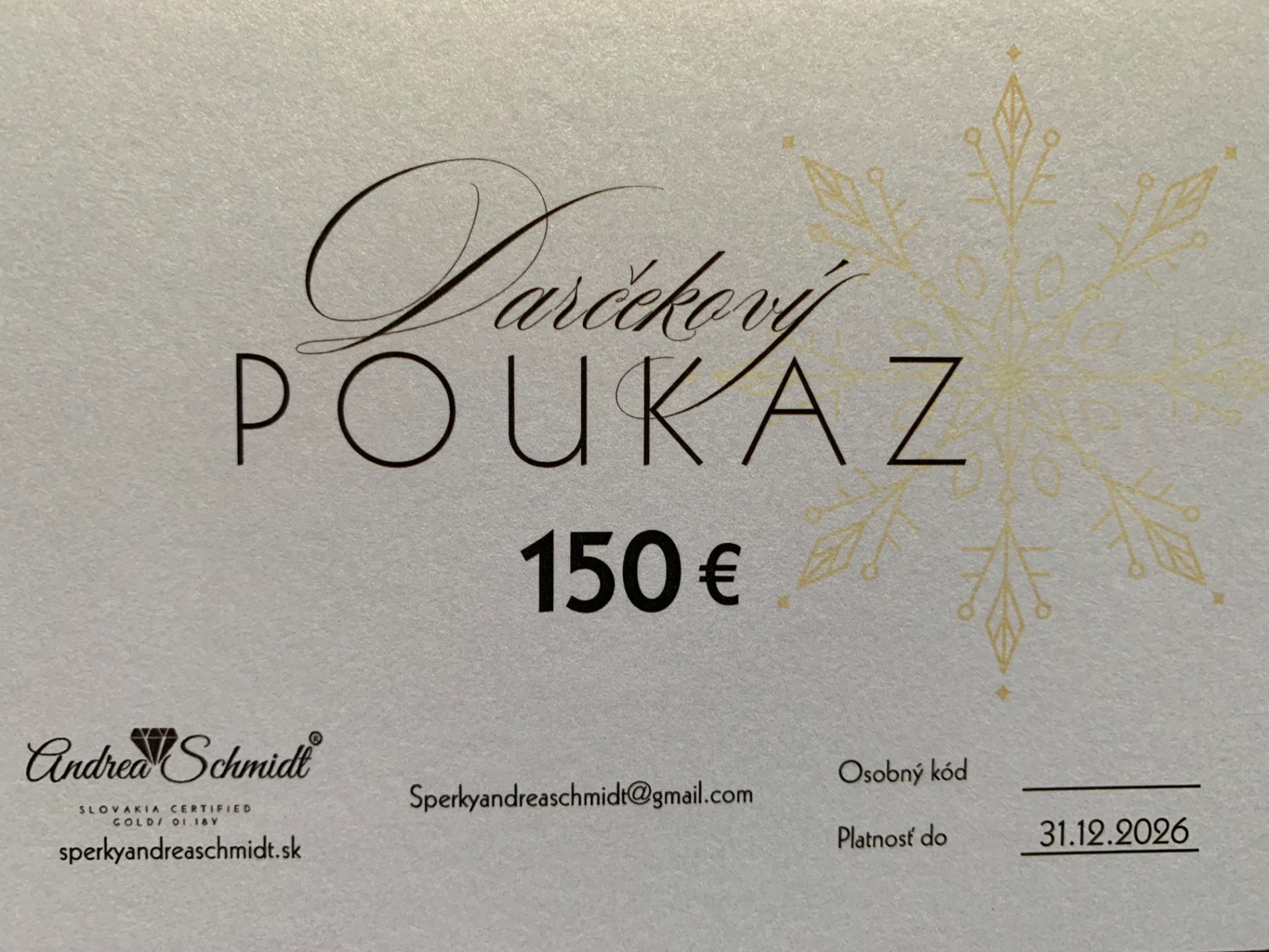Darčekový poukaz v hodnote 150 € je ideálnou voľbou pre každého, kto miluje nadčasové šperky.