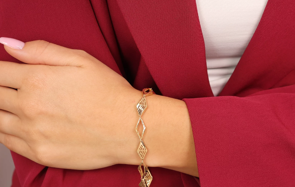 Dizajnový náramok Losange d'Or je sofistikovaným vyjadrením modernej elegancie. Jeho rytmicky radené články v tvare kosoštvorcov vytvárajú harmonický celok, ktorý pôsobí ľahko, vzdušne a zároveň luxusne.