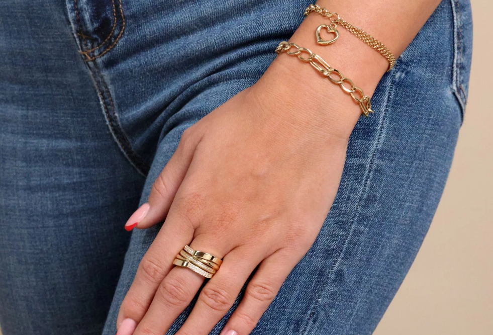 Golden Flow Ring je zlatý dizajnový prsteň so zirkónmi, ktorý vyniká harmonickým prepojením hladkých zlatých línií a jemného osadenia čírych zirkónov. Vrstvený dizajn vytvára plynulý pohyb a dodáva prsteňu moderný, luxusný vzhľad.