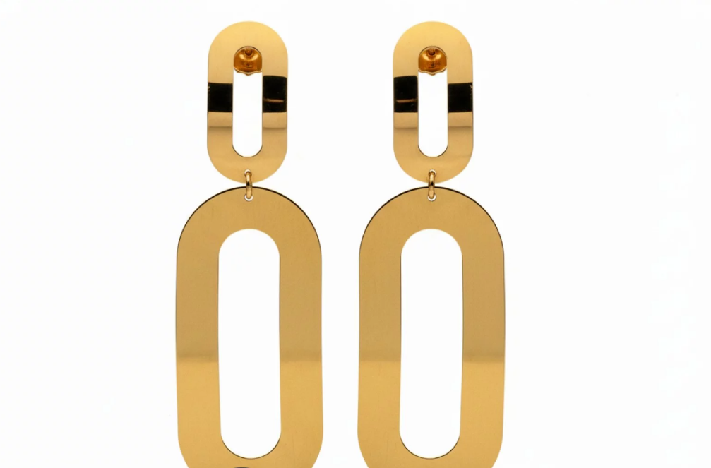 Náušnice Golden Linear Muse Earrings zaujmú minimalistickým dizajnom postaveným na predĺžených oválnych tvaroch s jemne zaoblenými hranami. Lesklý povrch zlata zvýrazňuje čistotu línií a dodáva šperku sofistikovaný, moderný charakter.