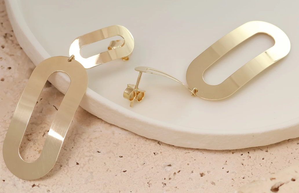 Dvojdielna konštrukcia vytvára prirodzený pohyb pri nosení a zároveň zachováva vizuálnu ľahkosť. Vďaka jednoduchému, no výraznému dizajnu sú náušnice ideálnou voľbou pre ženy, ktoré preferujú moderné šperky s architektonickým nádychom. Skvele doplnia elegantný outfit, ale aj minimalistický každodenný štýl.