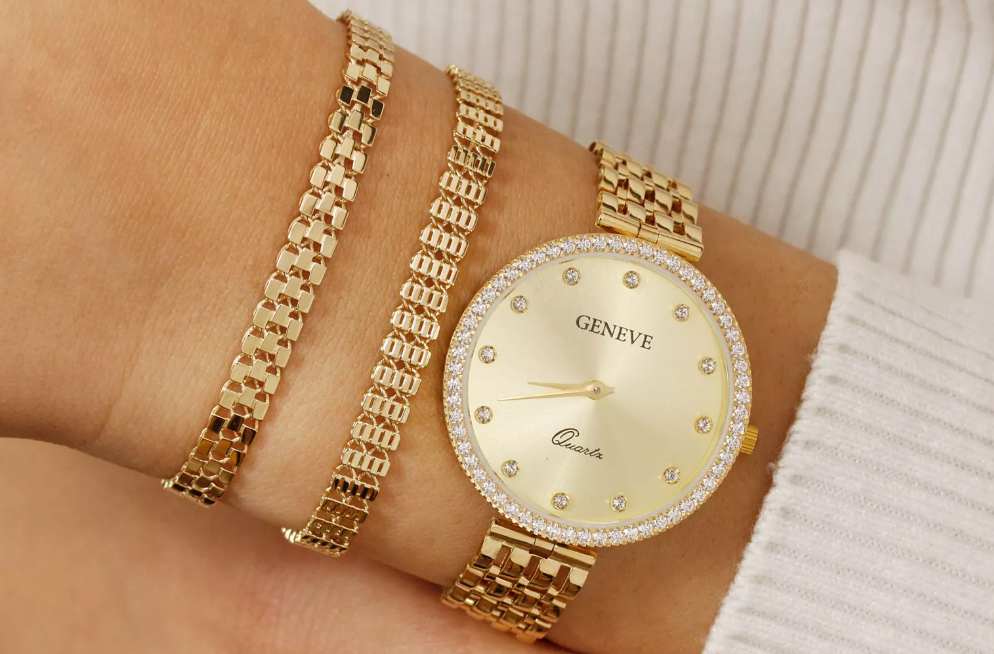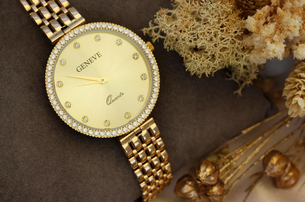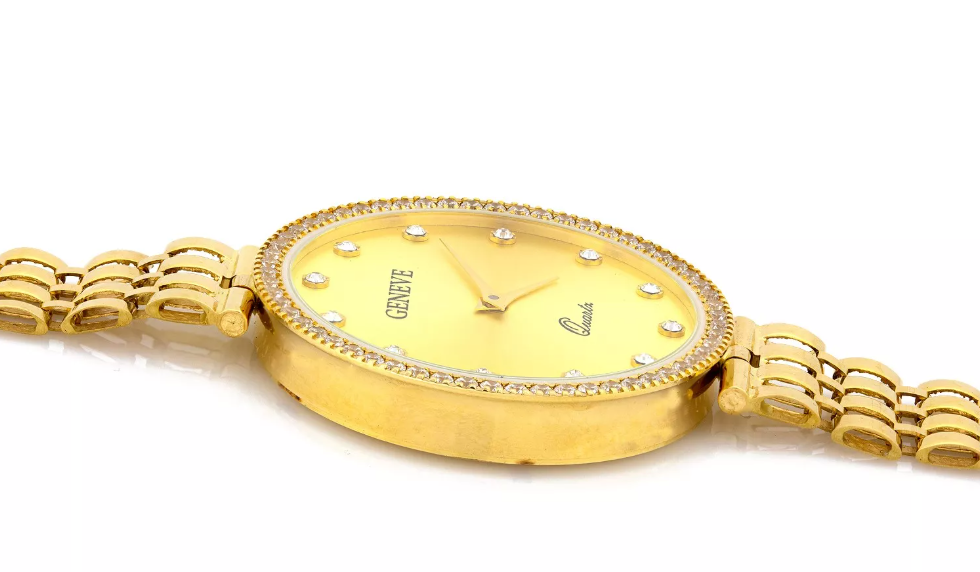 Dámske hodinky zo 14-karátového zlata so zirkónovým lemom