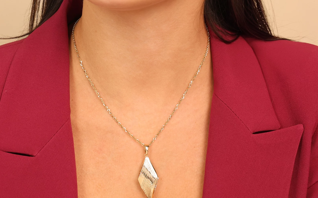 Linea Aurum je prívesok inšpirovaný čistotou línií a precíznosťou detailu. Jeho geometrický tvar pôsobí sofistikovane a nadčasovo, zatiaľ čo ryté paralelné línie vytvárajú jemnú hru svetla a tieňa. Vnútorná textúrovaná plocha dodáva šperku hĺbku a exkluzívny charakter, ktorý vynikne pri každom pohybe.