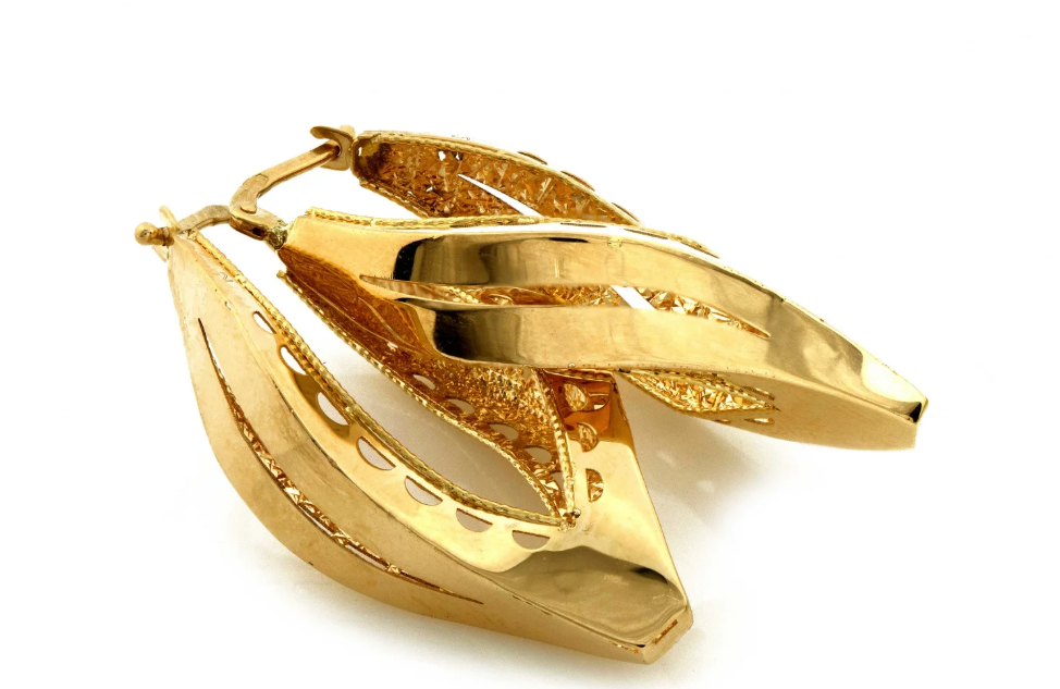 Zlaté náušnice Lunaria Leaf sú stelesnením ženskosti, jemnosti a prirodzenej elegancie. Ich tvar inšpirovaný líniou listu pôsobí ľahko, no zároveň výrazne. Kombinácia hladkých zlatých plôch, jemného gravírovania a precíznych perforovaných detailov vytvára sofistikovanú hru svetla, ktorá prirodzene rozžiari tvár a dodá outfitu exkluzívny nádych.