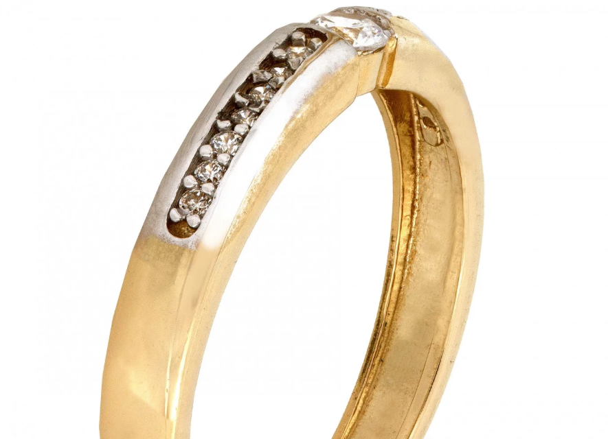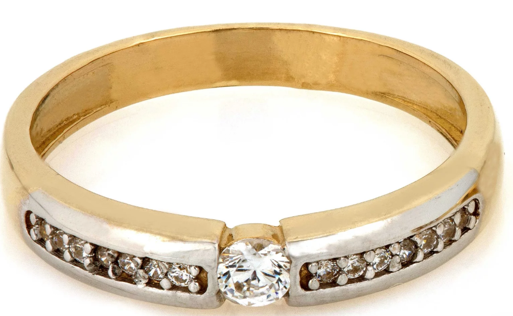 Zásnubný prsteň Golden Dualia spája nadčasovú eleganciu žltého zlata s moderným leskom bieleho zlata. V jeho centre sa vyníma žiarivý zirkón, ktorý zachytáva svetlo z každého uhla a vytvára pôsobivý vizuálny efekt. Po jeho stranách sa tiahne línia drobných zirkónov vsadených do kontrastného bieleho zlata, ktoré dodávajú prsteňu luxusný a zároveň jemný charakter.