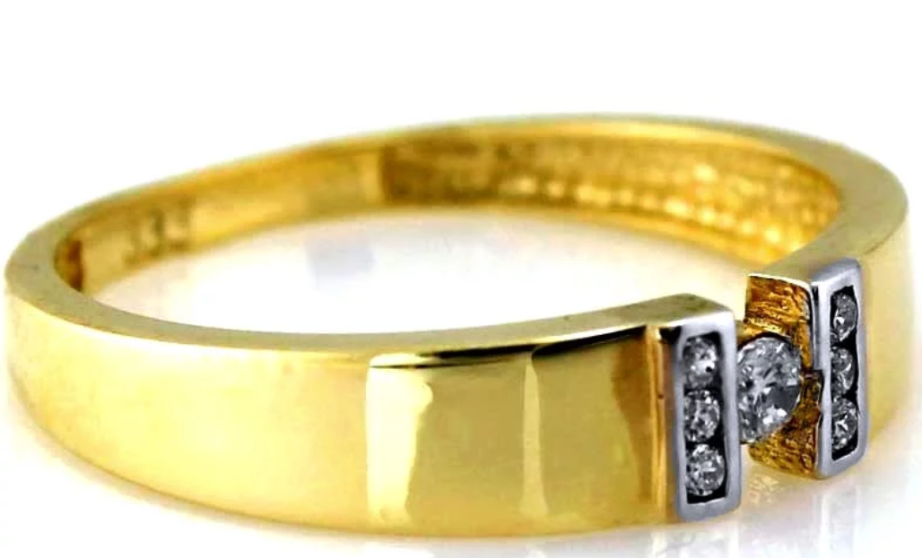 Zásnubný prsteň Golden Élan spája klasickú krásu žltého zlata s moderným detailom bieleho zlata, ktoré elegantne rámuje žiarivý centrálny zirkón. Po jeho stranách sa nachádzajú drobné zirkóny, ktoré dodávajú prsteňu jemnú iskru a luxusný akcent bez toho, aby narušili jeho čisté línie.