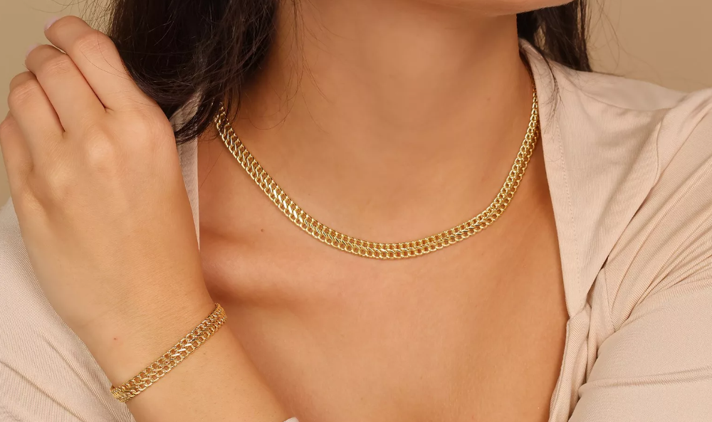 Táto zlatá retiazka je vyrobená z kvalitného 14-karátového zlata a zaujme výrazným dvojitým článkovým vzorom. Jej elegantný dizajn je ideálny pre ženy, ktoré preferujú výraznejšie šperky s nadčasovou estetikou. Vďaka precíznemu spracovaniu a modernému vzhľadu pôsobí štýlovo samostatne, no zároveň sa dá perfektne kombinovať s ďalšími doplnkami. Retiazka je vhodná na každodenné nosenie aj ako luxusný doplnok na špeciálne príležitosti.