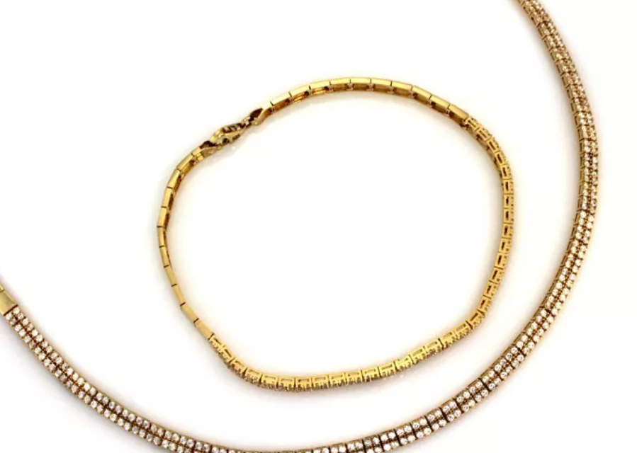 Luxusný set zo 14-karátového žltého zlata zdobený žiarivými kubickými zirkónmi. Elegantný dizajn, ktorý zvýrazní ženskosť a štýl pri každej príležitosti.