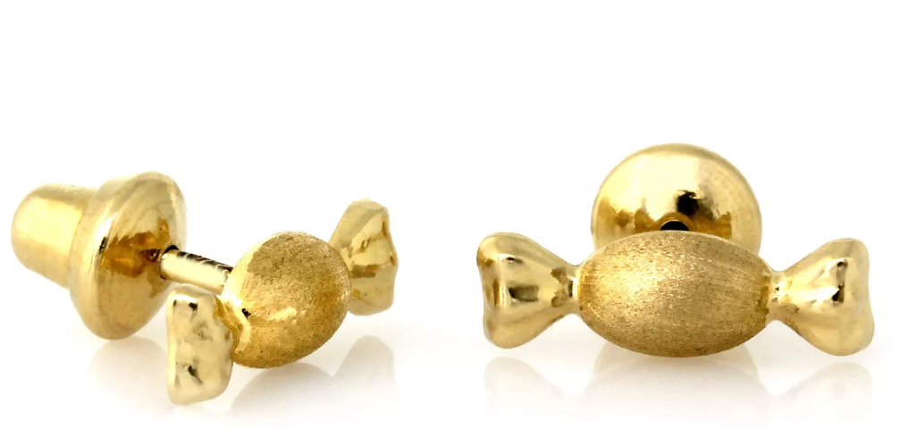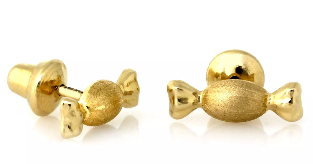 Roztomilé zlaté náušnice v tvare cukríkov zo 14-karátového zlata s matným stredom a lesklými okrajmi – ideálne pre milovníkov hravých, no elegantných detailov. Kombinácia jemného matného povrchu so vysokým leskom vytvára nádherný kontrast, ktorý upúta na prvý pohľad.
