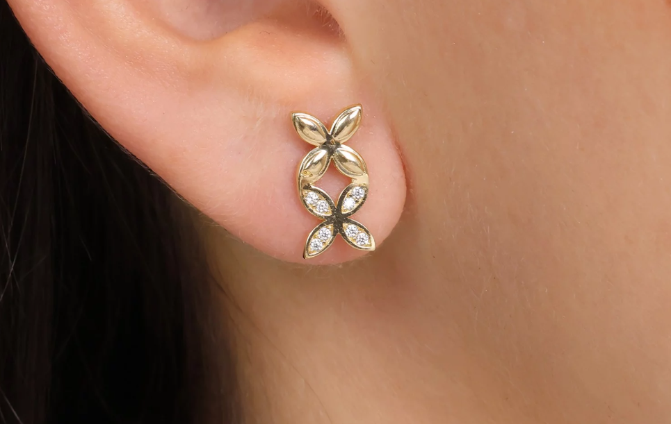 Tieto zlaté náušnice v tvare kvetu predstavujú spojenie jemnosti a luxusu. Ich precízne vyrezávaný tvar a lesklé číre zirkóny vytvárajú dokonalý šperk na každý deň aj výnimočné príležitosti. Ich ľahká a pohodlná konštrukcia zaručuje komfort pri nosení, pričom nadčasový dizajn doplní každý outfit.