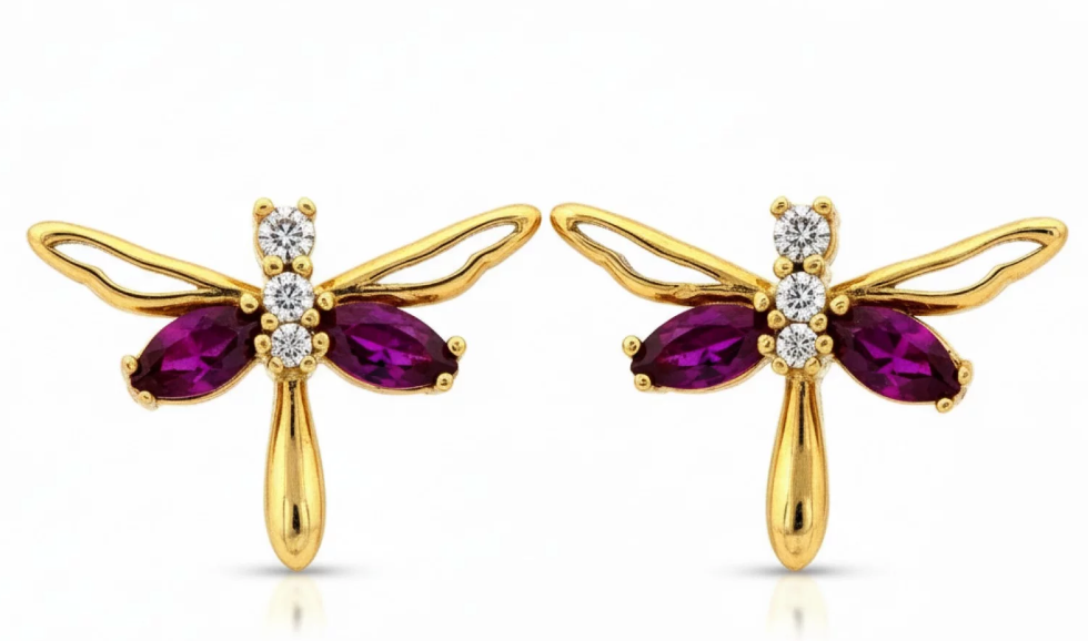 Tieto elegantné náušnice v tvare vážok zdobené iskrivými kubickými zirkónmi v odtieňoch bielej a fialovej. Vážka ako symbol rovnováhy, zmeny a harmónie prinesie do vášho štýlu dotyk jemnosti a ženskosti. Ideálne na bežné nosenie aj ako výrazný detail pri špeciálnych príležitostiach.