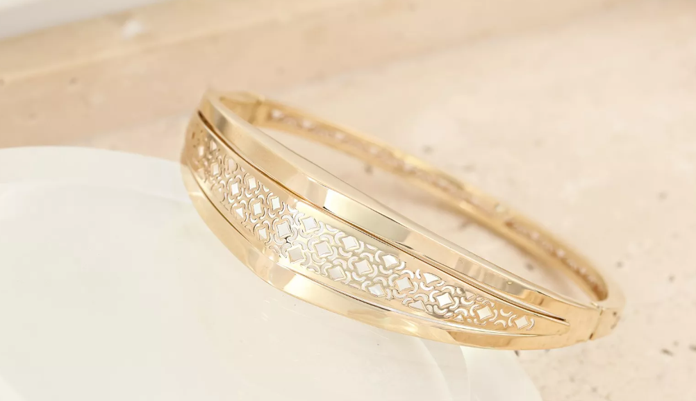 Jemný, no výrazný náramok zo 14-karátového zlata s elegantným filigránovým vzorom. Nadčasový doplnok pre modernú ženu.