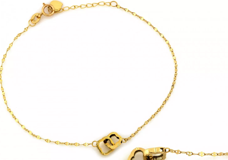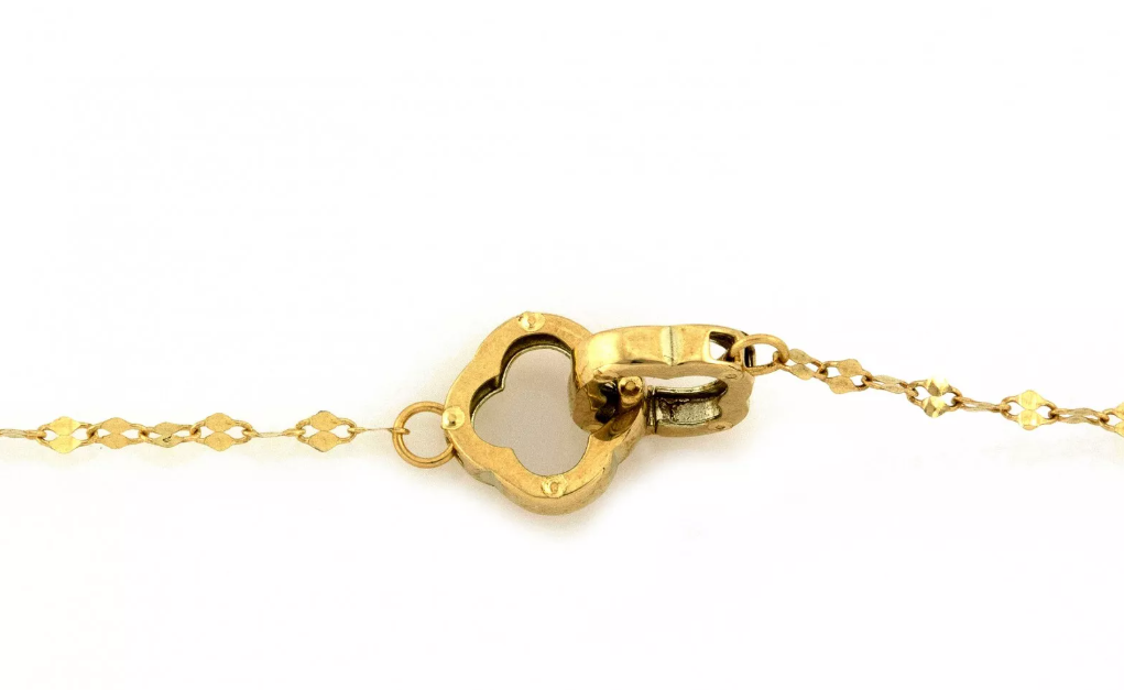 Tento jemný náramok zo 14-karátového zlata zdobí minimalistický štvorlístok – nadčasový symbol šťastia, ochrany a harmonickej energie.