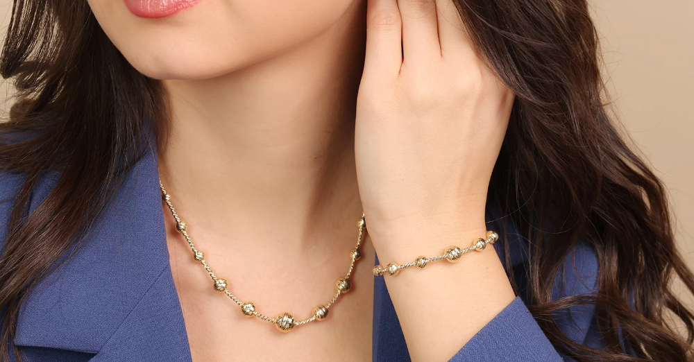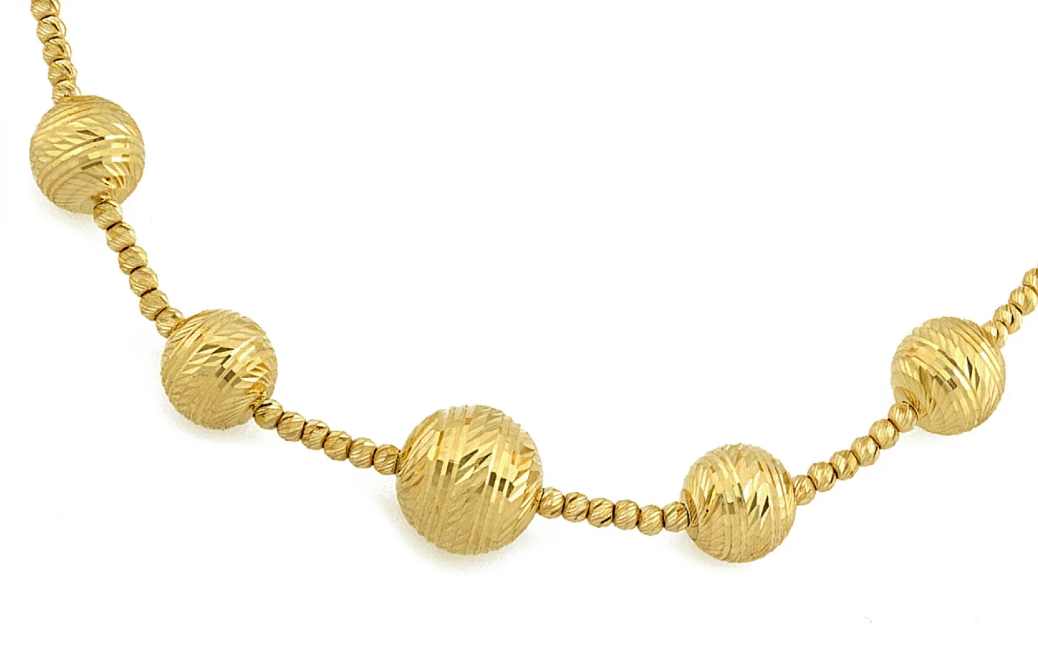 Zlatý náhrdelník Liora je stelesnením nadčasovej elegancie a ženskosti. Jemná retiazka je doplnená o precízne brúsené zlaté guľôčky, ktoré vytvárajú sofistikovaný a zároveň hravý efekt. Každý detail je navrhnutý tak, aby jemne odrážal svetlo a dodával šperku jedinečný lesk.