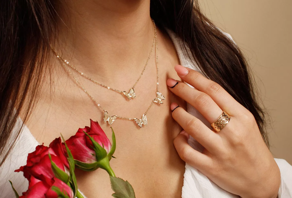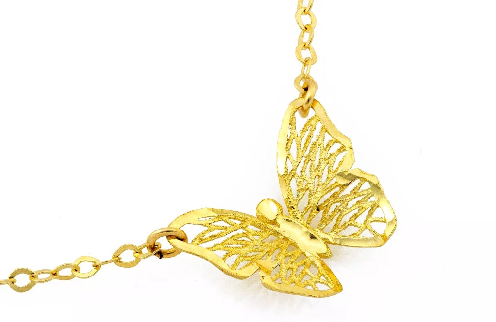 Zlatý náhrdelník Papillon je nežným a elegantným doplnkom, ktorý si zamilujete na prvý pohľad. Dominantou šperku je detailne prepracovaný motýľ, ktorý pôsobí ľahko, vzdušne a mimoriadne žensky.