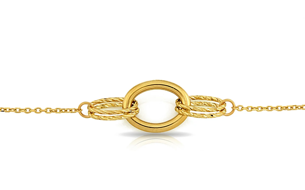 Tento nadčasový zlatý náramok Élégance Circle zaujme na prvý pohľad svojím unikátnym dizajnom. Dominantným prvkom je elegantný kruh, ktorý je z oboch strán prepojený jemne prepletanými detailmi, dodávajúcimi šperku originalitu a sofistikovaný vzhľad.