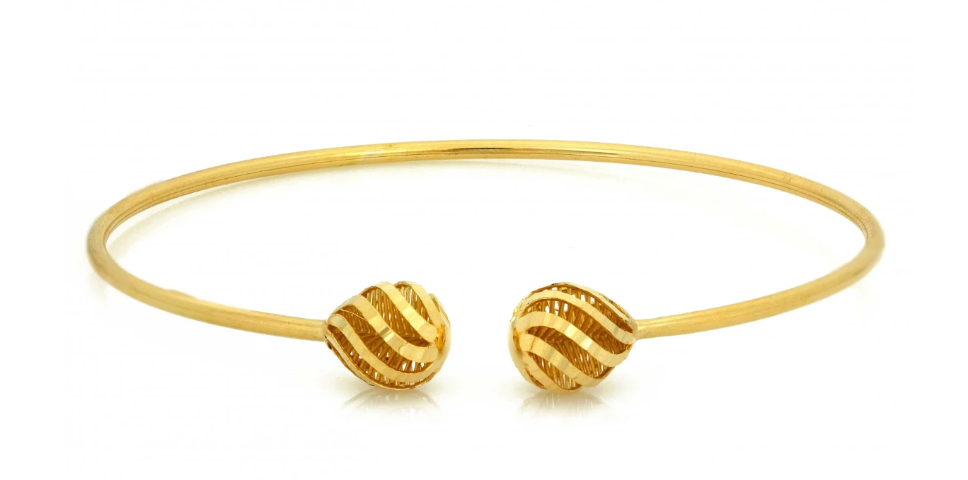 Elegantný zlatý náramok so zdobenými filigránovými guľôčkami, ktoré dodajú jemný lesk každému outfitu. Ideálny na vrstvenie aj samostatné nosenie.