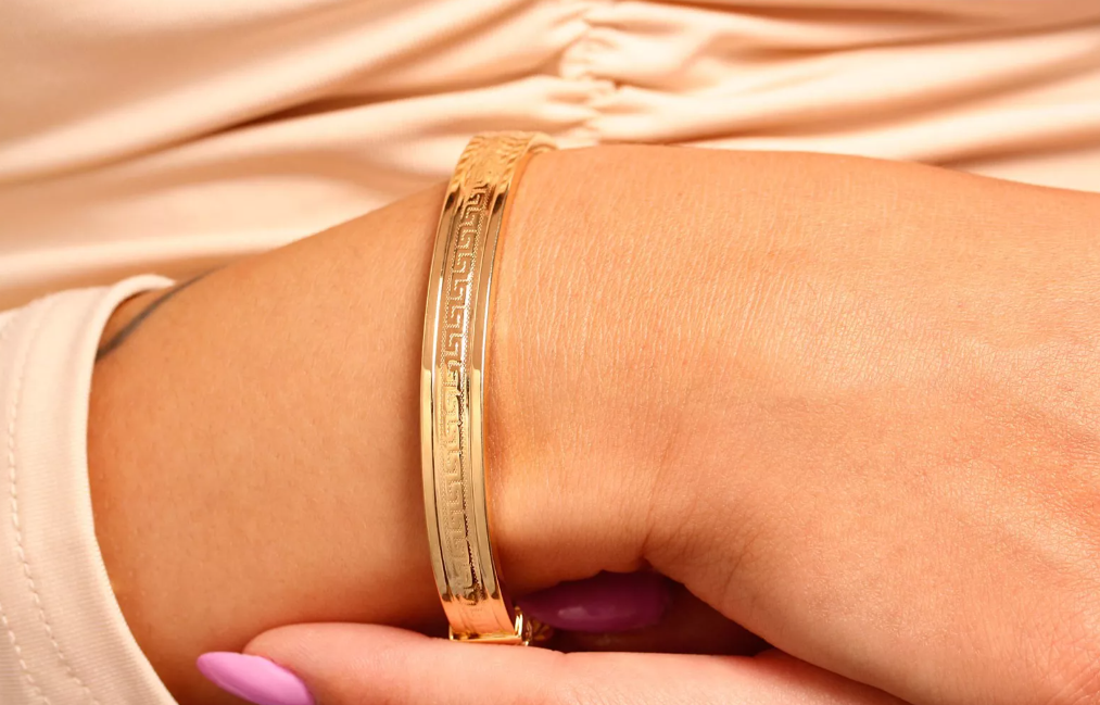 Elegantný pevný náramok inšpirovaný nadčasovým gréckym vzorom. Luxusný doplnok, ktorý zvýrazní tvoj štýl pri každej príležitosti.