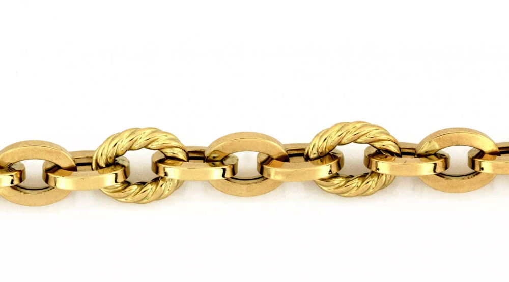Zlatý náramok s kombinovanými kruhovými článkami