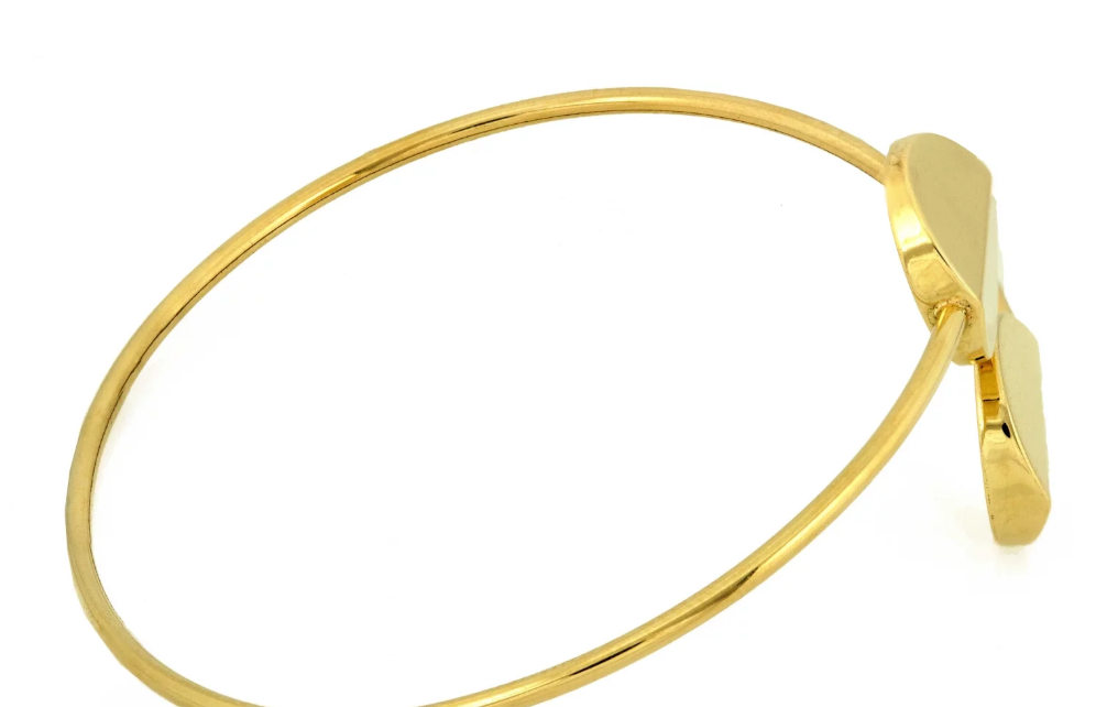 Zlatý náramok Solenne Élégance je dokonalým doplnkom pre ženy, ktoré milujú čisté línie a sofistikovaný štýl. Jemná pevná konštrukcia náramku je doplnená o dva hladké kruhové prvky, ktoré vytvárajú moderný a vyvážený dizajn.
