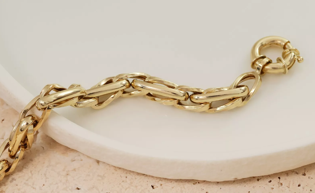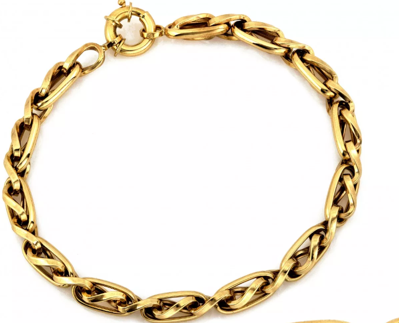 Zlatý náramok s prepletenými článkami