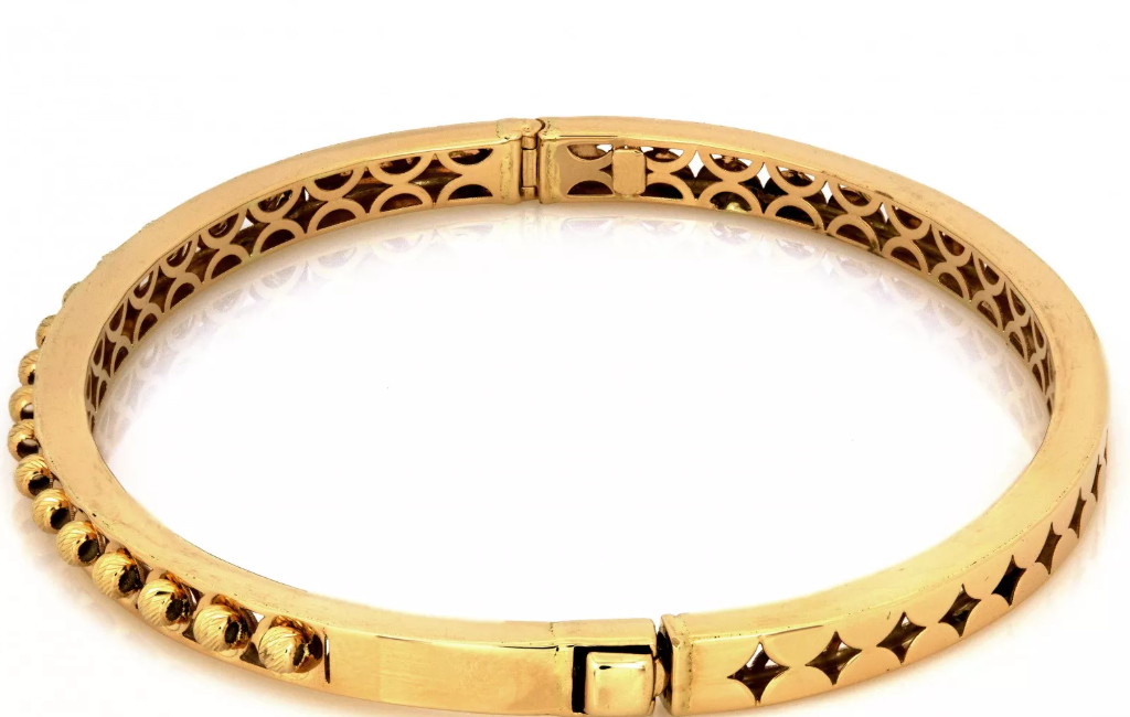Zlatý pevný náramok s gravírovanými guľôčkami