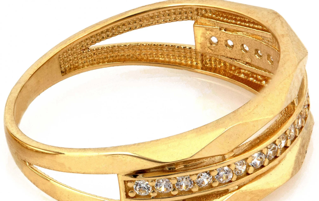 Masívny zlatý prsteň 14k so zirkónmi Golden Élan Ring vyniká dynamickým dizajnom a prepracovanými líniami, ktoré odrážajú svetlo z každého uhla. Stredová línia osadená zirkónmi dodáva prsteňu žiarivý efekt a zvýrazňuje jeho luxusný charakter.