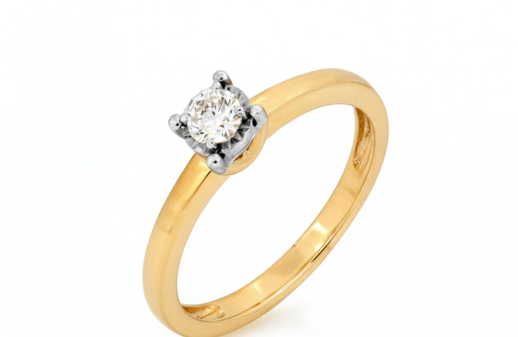Elegantný zlatý prsteň s jedným centrálnym diamantom je stelesnením nadčasovej krásy a čistoty. Diamant je osadený do rodovanej opravy z bieleho zlata, ktorá zvýrazňuje jeho prirodzený lesk. Kombinácia teplého tónu žltého zlata a chladnej, žiarivo bielej opravy pôsobí luxusne, vyvážene a veľmi vkusne.