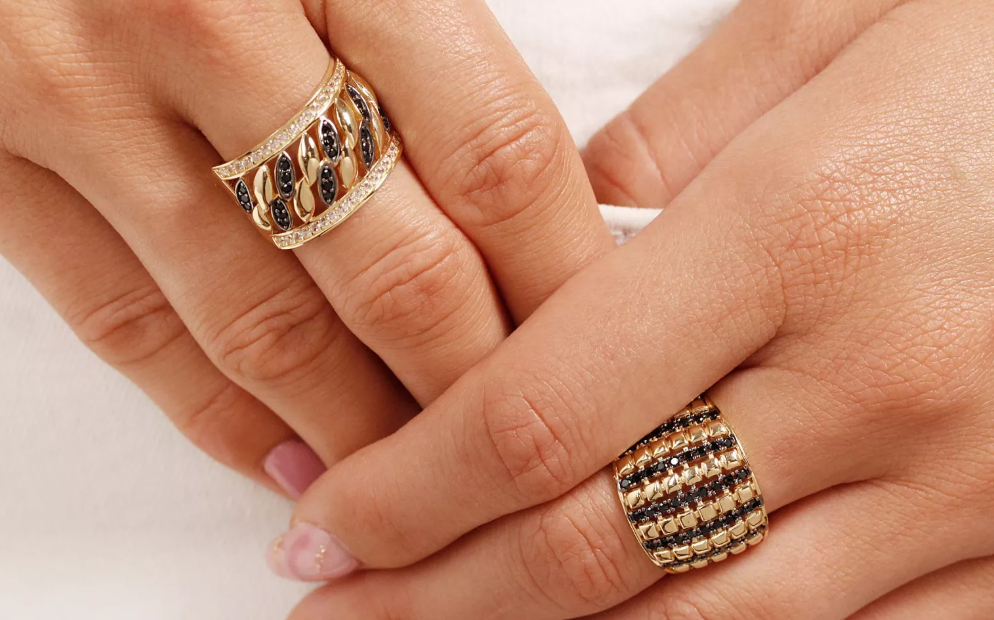 Zlatý prsteň s čiernymi a čírymi zirkónmi