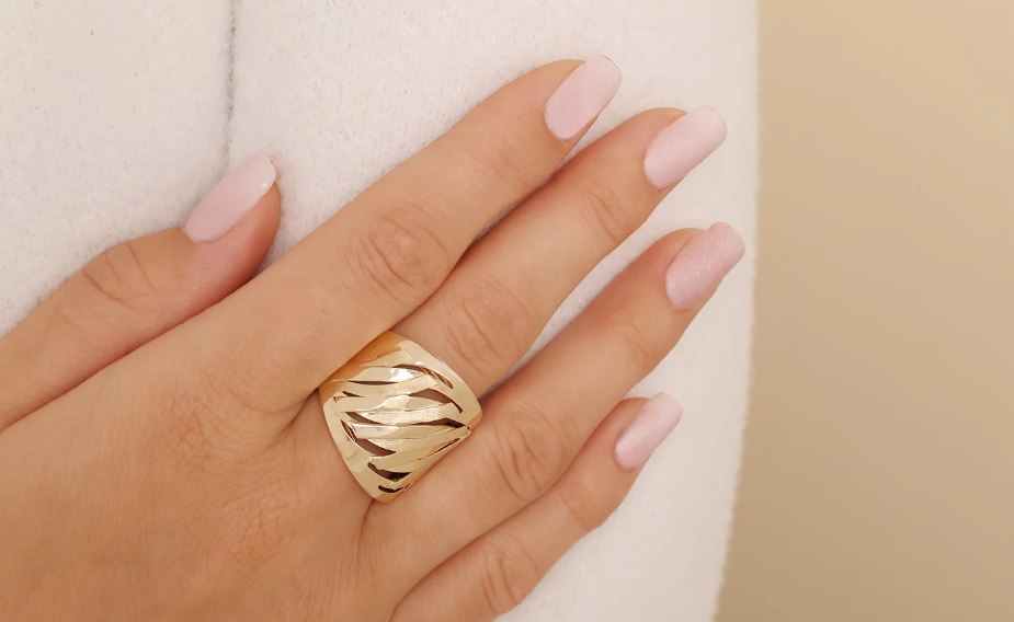 Tento zlatý prsteň s prepletaným dizajnom spája eleganciu s odvážnym štýlom pričom striedanie lesklých a matných častí vytvára jedinečný vizuálny efekt. Vďaka svojej šírke a prepracovanej štruktúre pôsobí luxusne a dokonale doplní akýkoľvek outfit – od každodenného po slávnostný. Prsteň je vhodný pre ženy, ktoré milujú originálne šperky s charakterom.