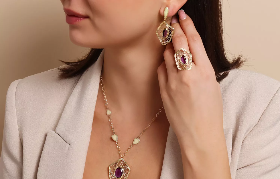 Tento umelecký prsteň zo žltého zlata spája precíznosť a jedinečnosť. Dominantným prvkom je oválny prírodný ametyst – kameň intuície a pokoja – zasadený do rafinovanej štruktúry pripomínajúcej zlatú pavučinu. Každý detail je spracovaný s dôrazom na eleganciu a originalitu, vďaka čomu sa prsteň stáva ideálnym doplnkom pre sebavedomé ženy s osobitým štýlom.