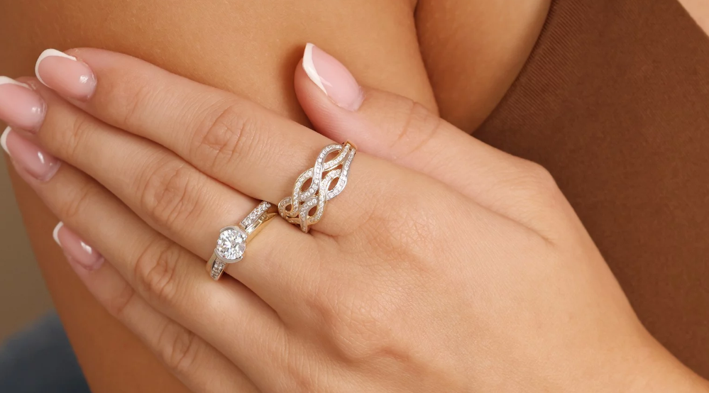Tento zlatý prsteň zaujme na prvý pohľad svojím prepracovaným prepletaným dizajnom, ktorý symbolizuje spojenie, harmóniu a večnosť. Jemné línie sa plynulo prelínajú a vytvárajú elegantný rytmus, v ktorom vynikajú trblietavé kamene zachytávajúce svetlo z každého uhla.