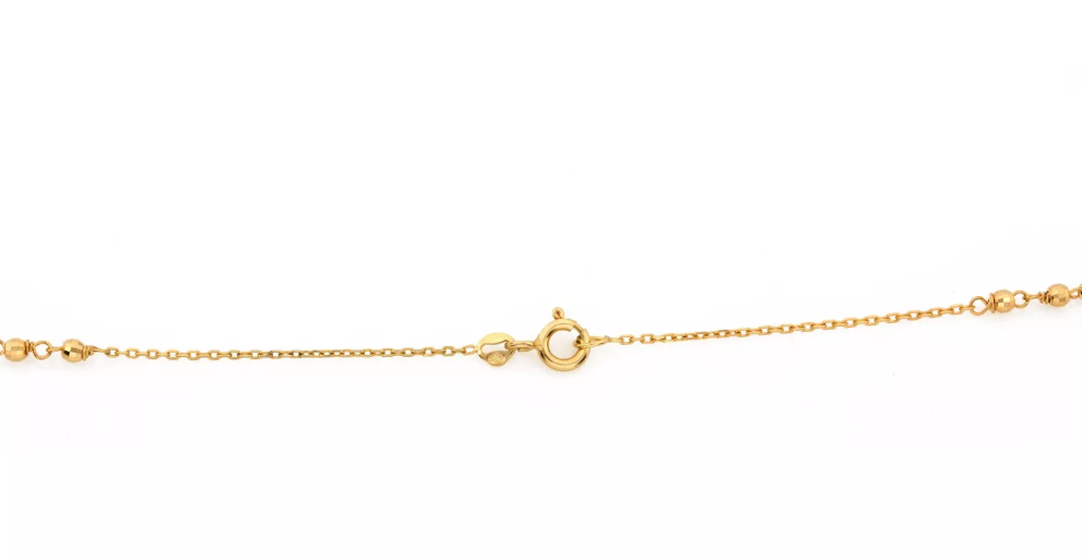 Tento nádherný náhrdelník zo 14-karátového žltého zlata je navrhnutý v štýle ruženca. Tvoria ho precízne spracované guľôčky, ktoré sa pravidelne striedajú po celej dĺžke retiazky, doplnené o malý medailónik a krížik. Symbolizuje duchovnú hĺbku, vieru a ochranu. Vďaka svojmu jemnému dizajnu pôsobí štýlovo a zároveň zmysluplne – ideálny doplnok na každodenné nosenie aj ako darček s posolstvom.