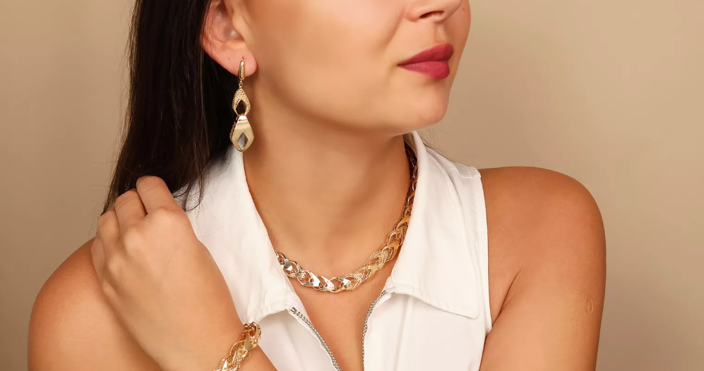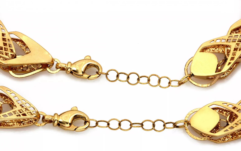 Zlatý set náhrdelník a náramok s geometrickým vzorom