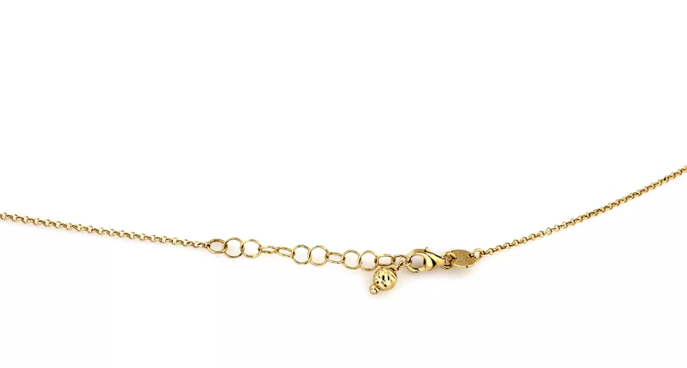Moderný visiaci náhrdelník zo 14-karátového žltého zlata s dekoratívnymi prvkami pripomínajúcimi guľôčky so žiariacim efektom. Elegantný doplnok, ktorý zvýrazní dekolt.